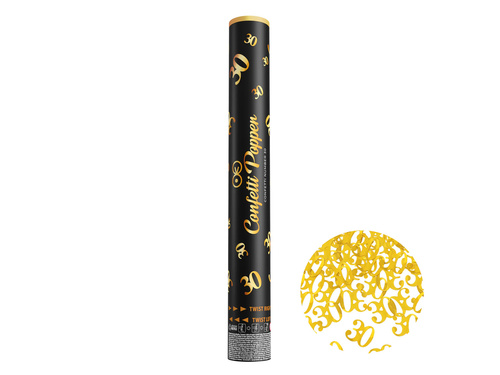 • Tuba strzelająca konfetti ze złotą liczbą 30, idealna na trzydzieste urodziny.